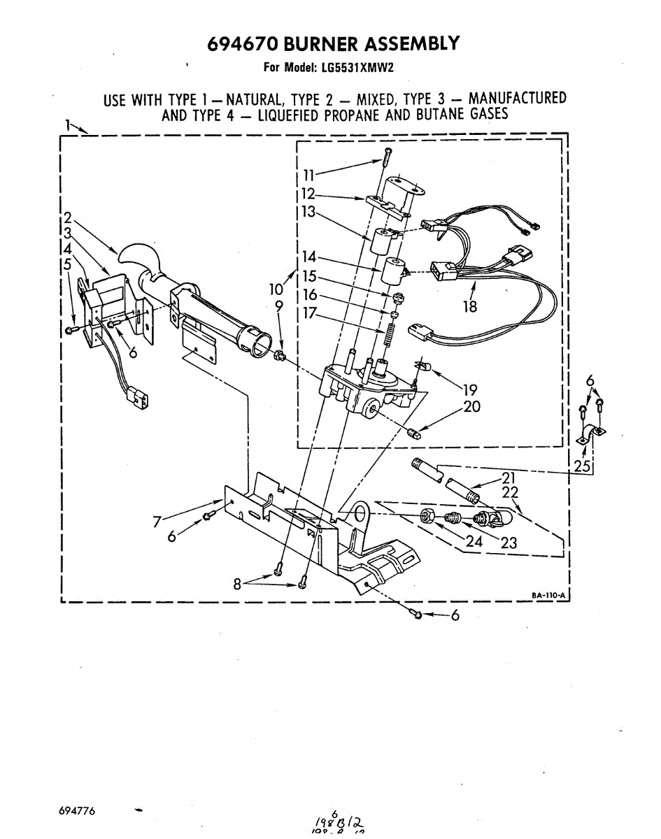 Parts for Whirlpool LG5531XMW2: 04 - 694670 Burner Parts