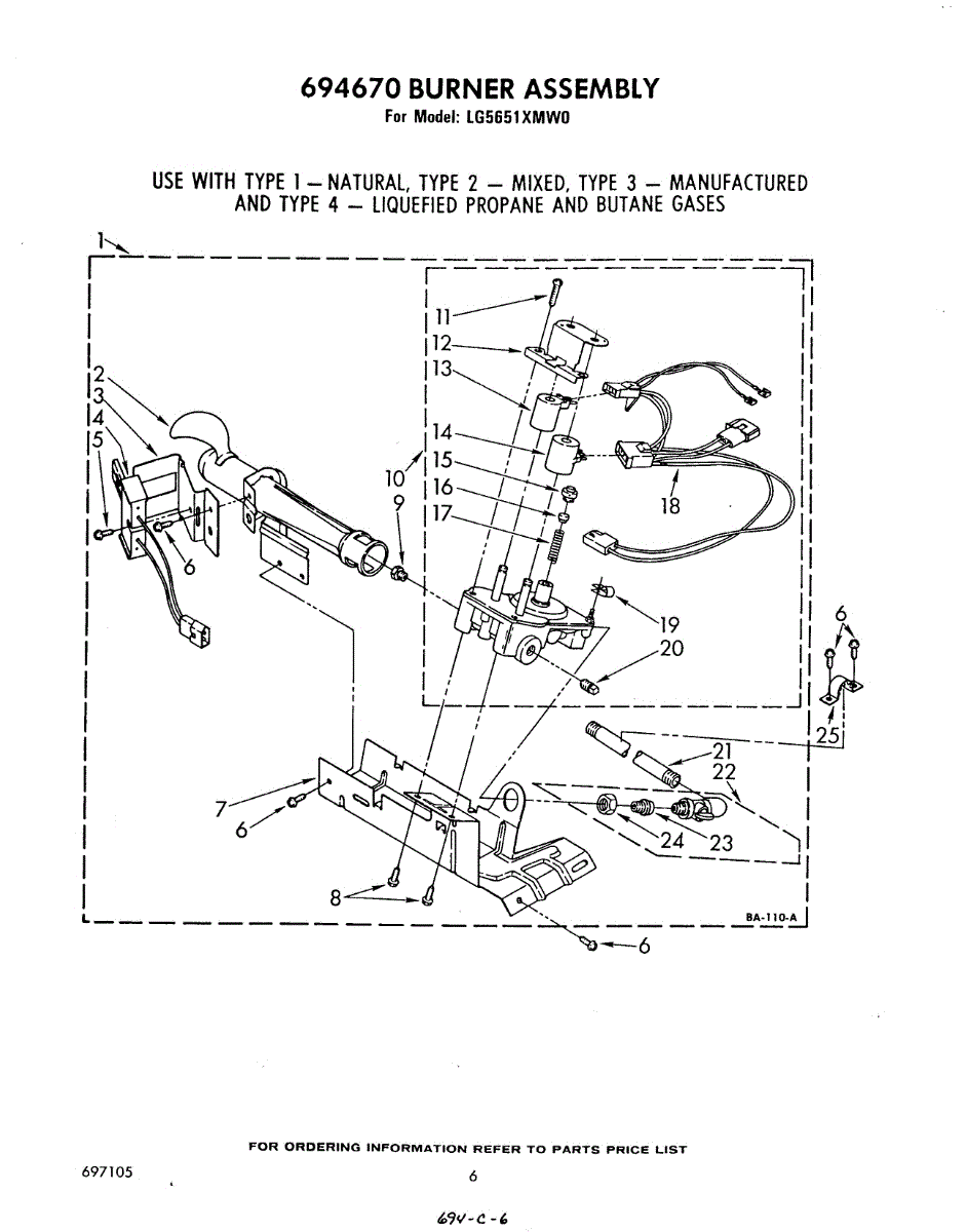Parts for Whirlpool LG5651XMW0: 04 - 694670 Burner Parts