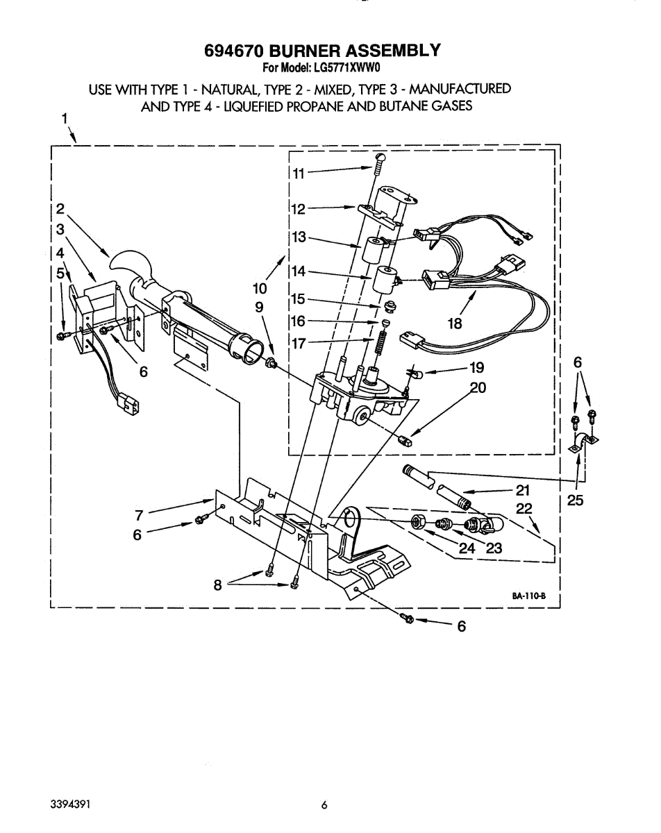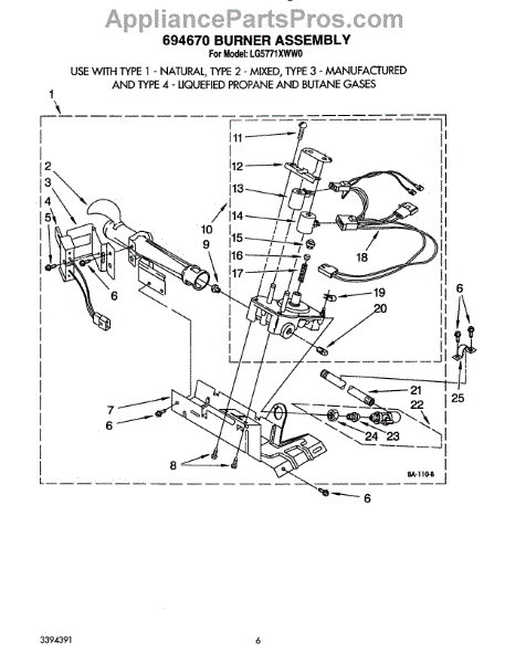 Parts for Whirlpool LG5771XWW0: 04 - 694670 Burner Parts
