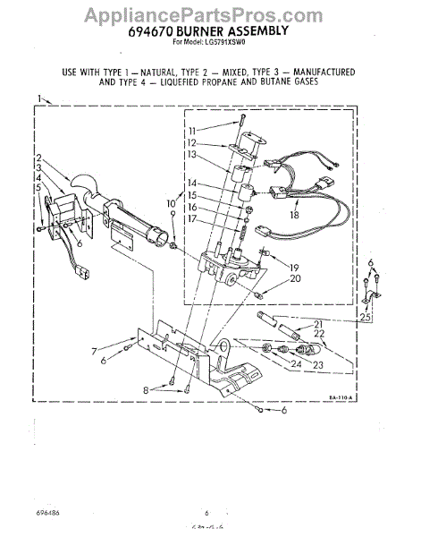 Parts for Whirlpool LG5791XSW0: 04 - 694670 Burner Parts