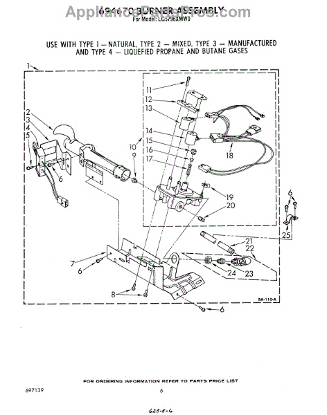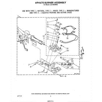 Parts for Whirlpool LG5796XMW0: 04 - 694670 Burner Parts