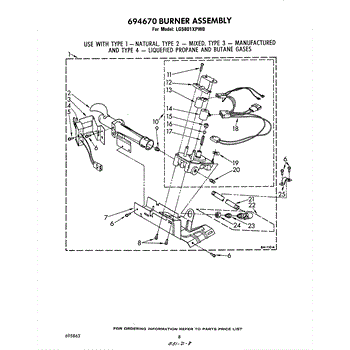 Parts for Whirlpool LG5801XPW0: 05 - 694670 Burner Parts