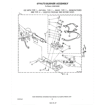 Parts for Whirlpool LG5801XSW3: 05 - 694670 Burner Parts