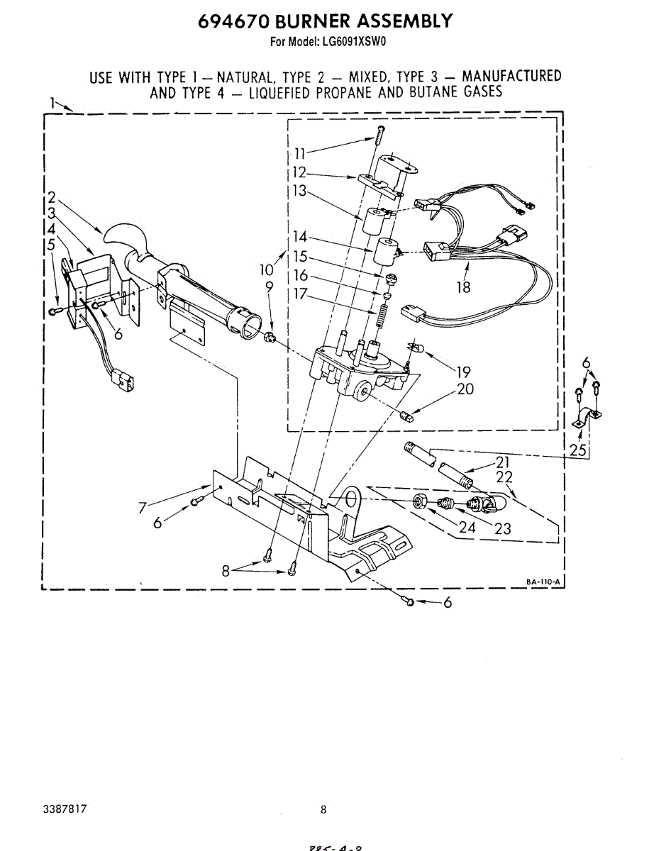 Parts for Whirlpool LG6091XSW0: 05 - 694670 Burner Parts