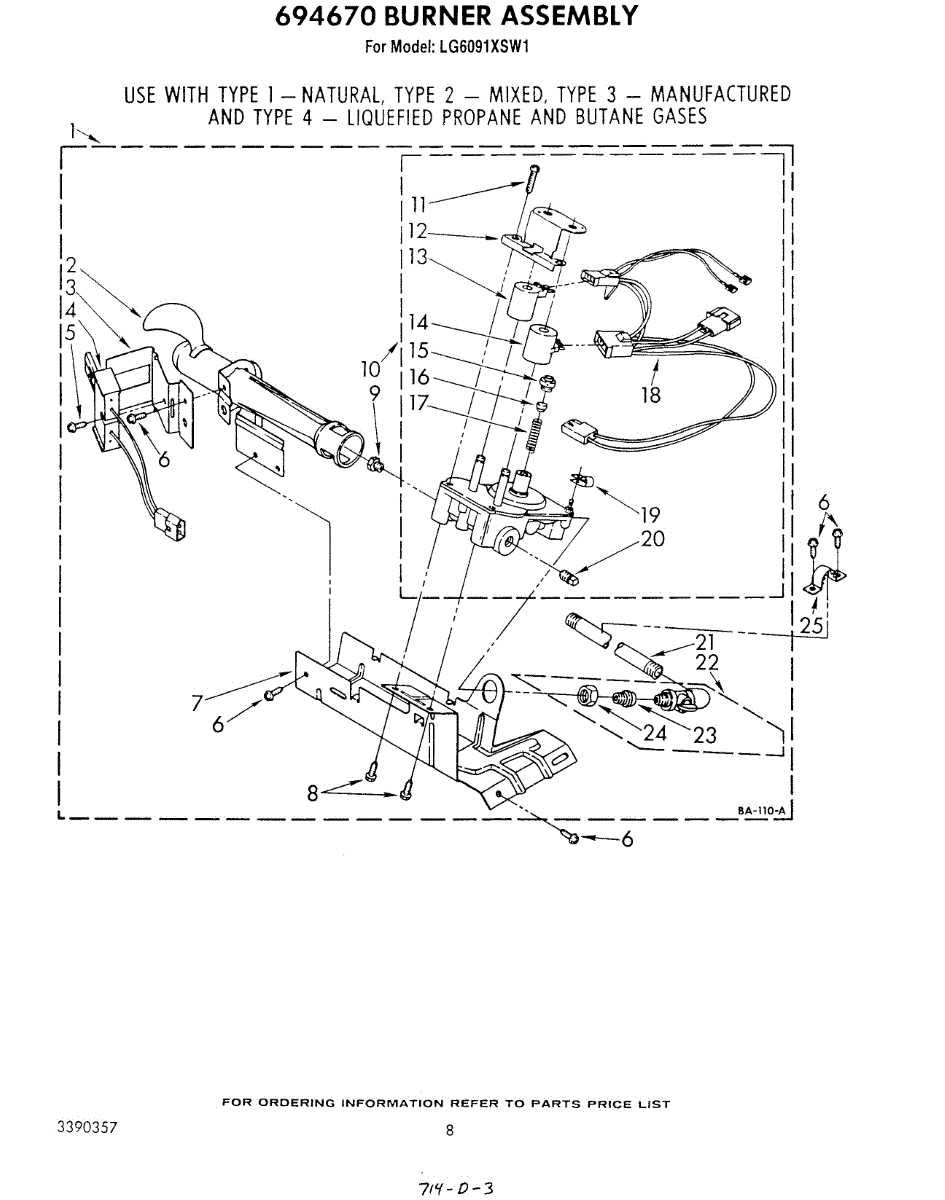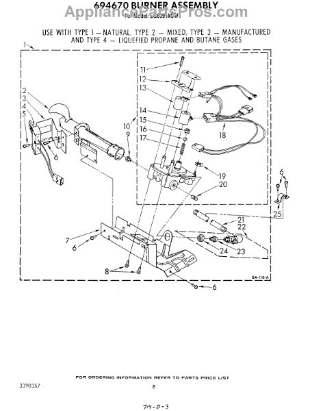 Parts for Whirlpool LG6091XSW1: 05 - 694670 Burner Parts