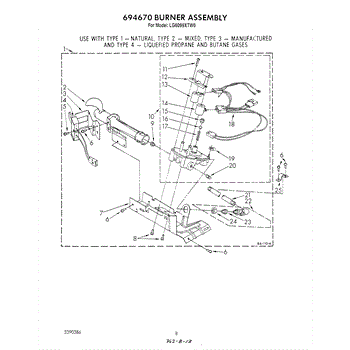 Parts for Whirlpool LG6099XTF0: 05 - 694670 Burner Parts