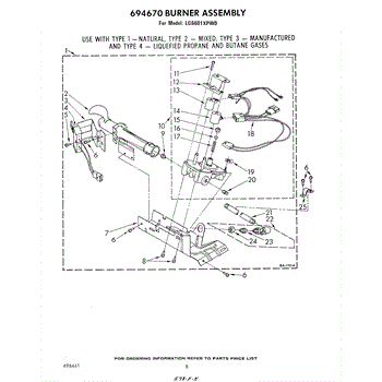 Parts for Whirlpool LG6601XPW0: 05 - 694670 Burner Parts