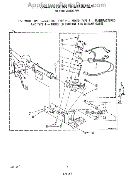 Parts for Whirlpool LG6606XPW1: 05 - 694670 Burner Parts