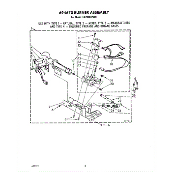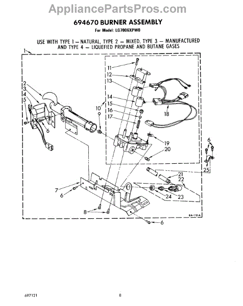 Parts for Whirlpool LG7006XPW0: 05 - 694670 Burner Parts