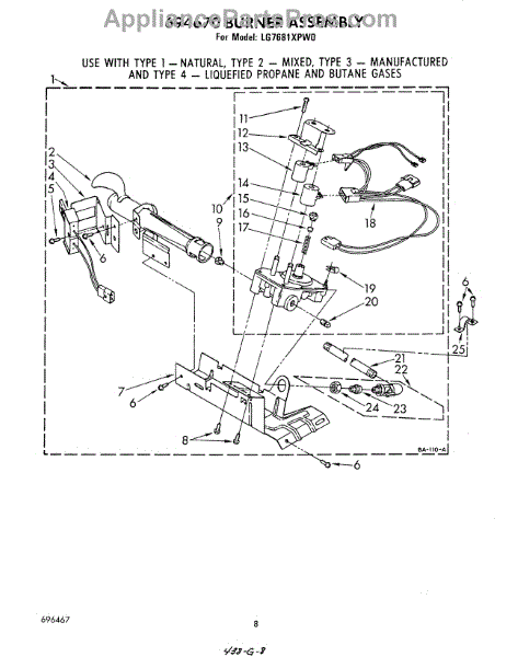 Parts for Whirlpool LG7681XPW0: 05 - 694670 Burner Parts