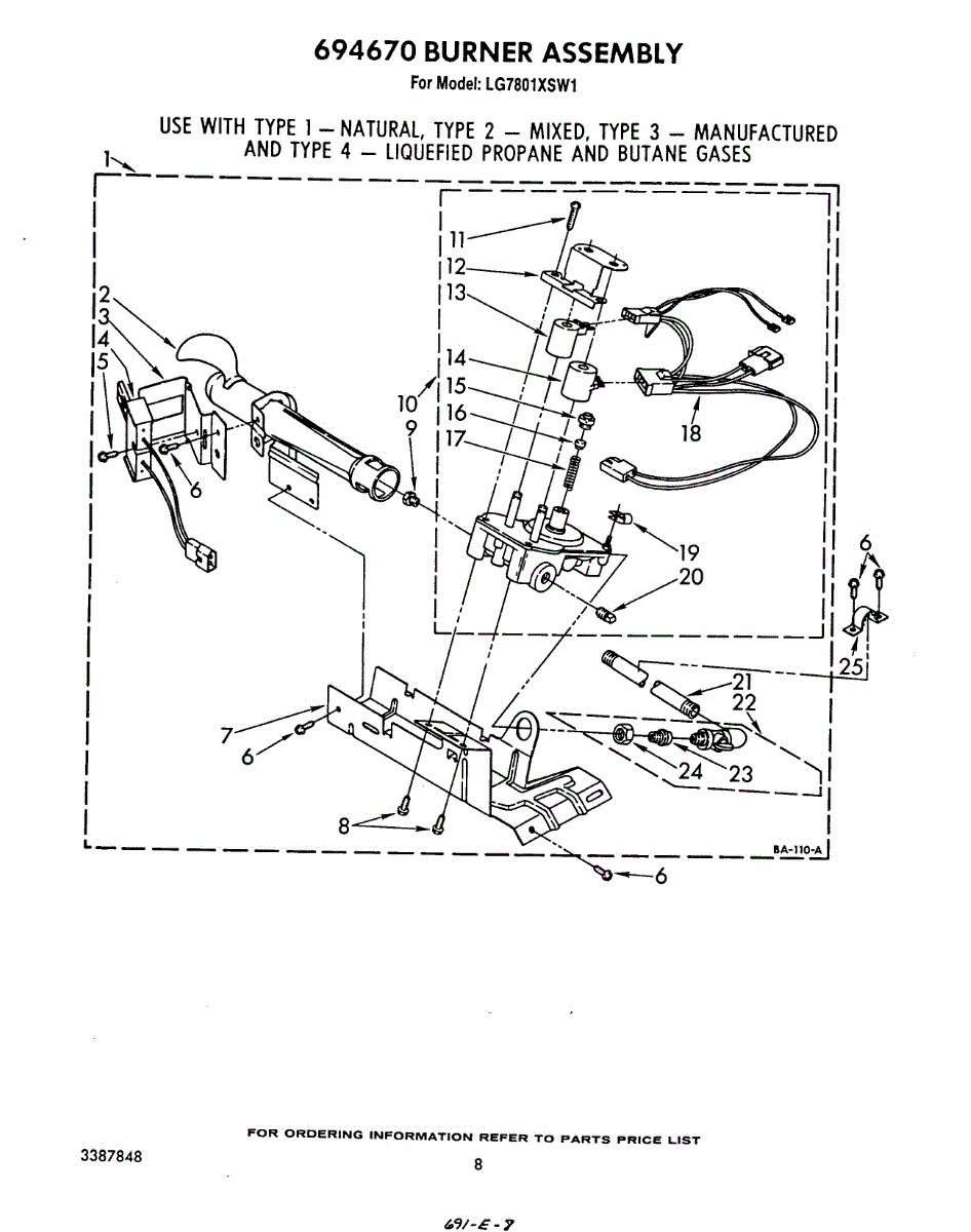 Parts for Whirlpool LG7801XSW1: 05 - 694670 Burner Parts