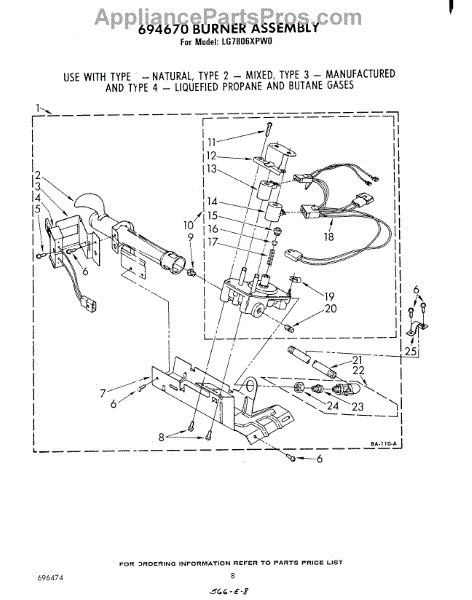 Parts for Whirlpool LG7806XPW0: 05 - 694670 Burner Parts