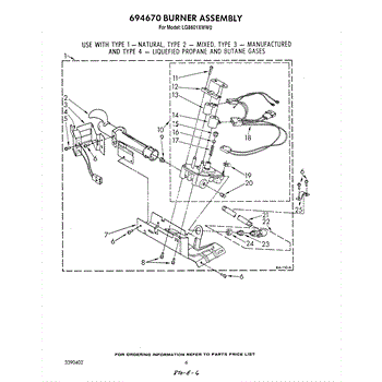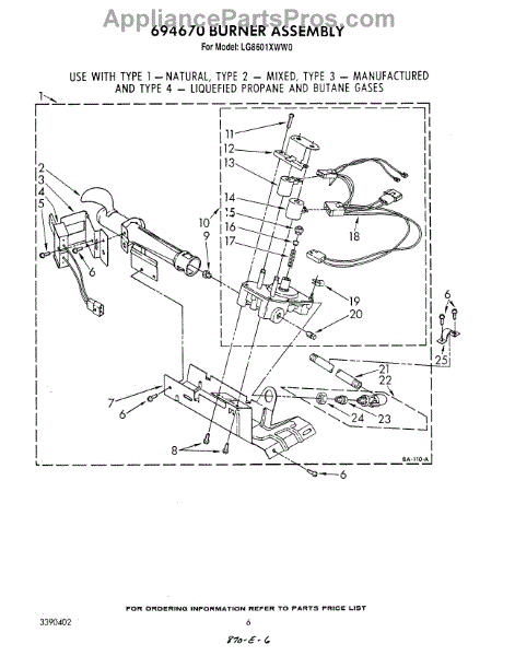 Parts for Whirlpool LG8601XWW0: 04 - 694670 Burner Parts