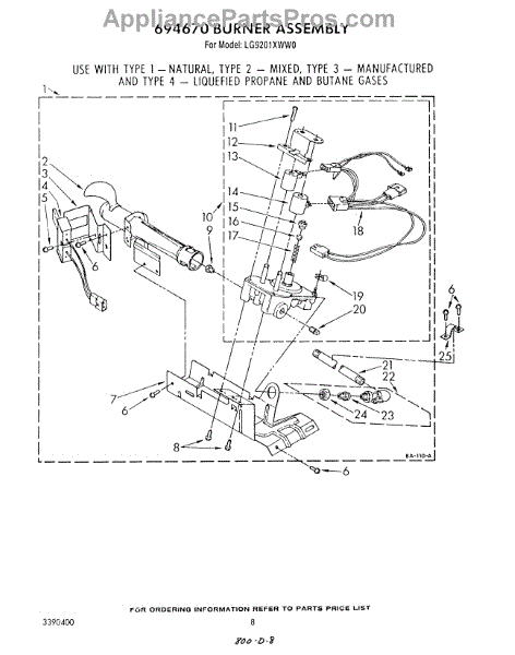Parts for Whirlpool LG9201XWW0: 05 - 694670 Burner Parts