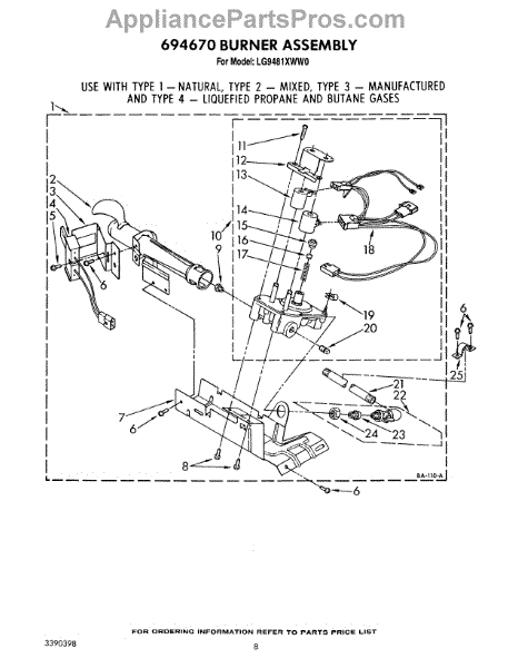 Parts for Whirlpool LG9481XWN0: 05 - 694670 Burner Parts