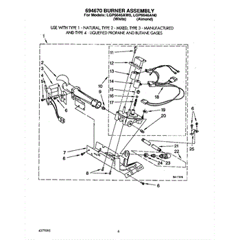 Parts for Whirlpool LGP6646AN0: 03 - 694670 Burner Parts