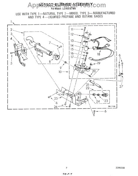 The Natural Gas Limiter is an OEM replacement part for Whirlpool dryers. Located where the gas supply connects, it regulates safe flow levels to fuel burners during heating cycles. Precise control prevents over-firing issues. Symptoms of a faulty limiter include: