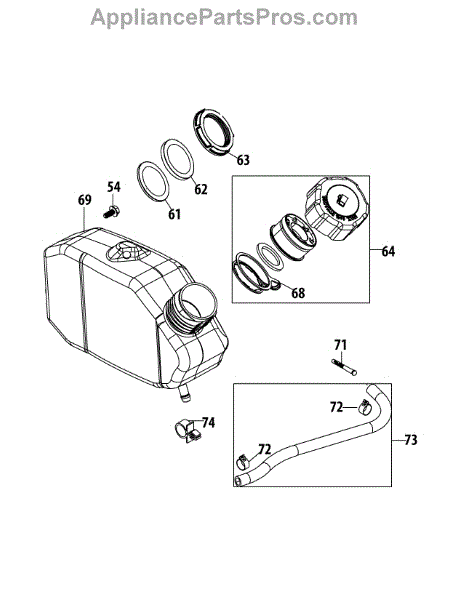 Replacement fuel tank for walk-behind mowers, tillers, and outdoor power equipment. Installs between engine and carburetor. Order when cracked or leaking.