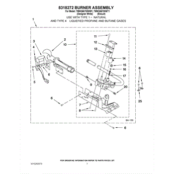 Parts for Whirlpool 7MWG66705WT1: 04 - 8318272 Burner Assembly Parts