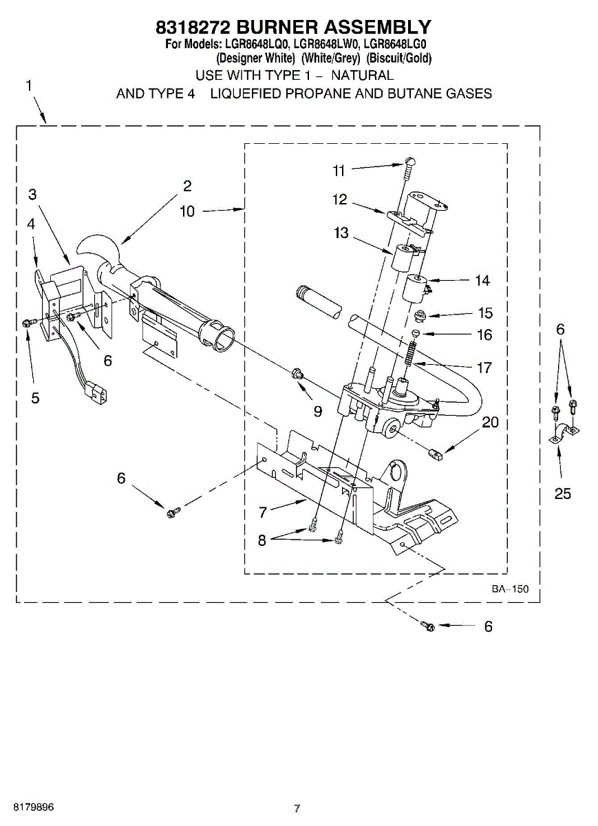 Parts for Whirlpool LGR8648LW0: 04 - 8318272 Burner Assembly Parts