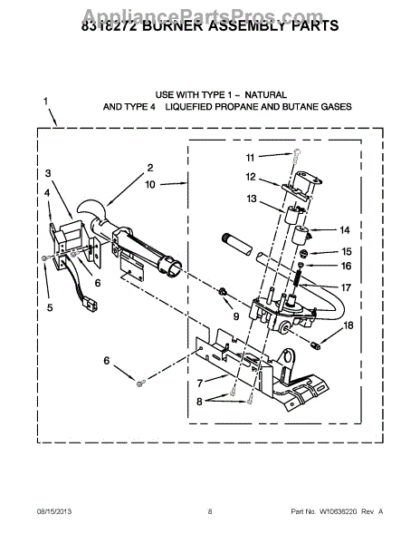 Parts for Whirlpool WGD4800BQ0: 05 - 8318272 Burner Assembly Parts
