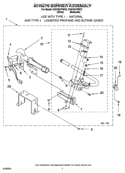 Parts for Kitchenaid KGHS01PWH2: 04 - 8318276 Burner Assembly Parts