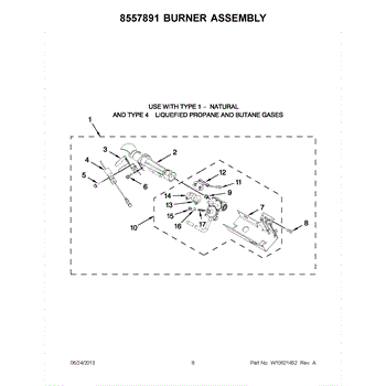 Parts for Maytag MGDB980BG0: 04 - 8557891 Burner Assembly Parts