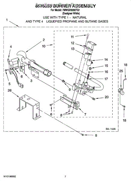 Parts for Whirlpool 7MWGD9200TQ1: 04 - 8576353 Burner Assembly Parts