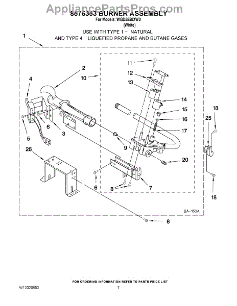 Parts for Whirlpool WGD5550XW0: 04 - 8576353 Burner Assembly Parts