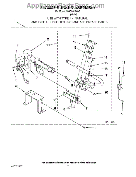 Parts for Whirlpool WGD5610XW0: 04 - 8576353 Burner Assembly Parts