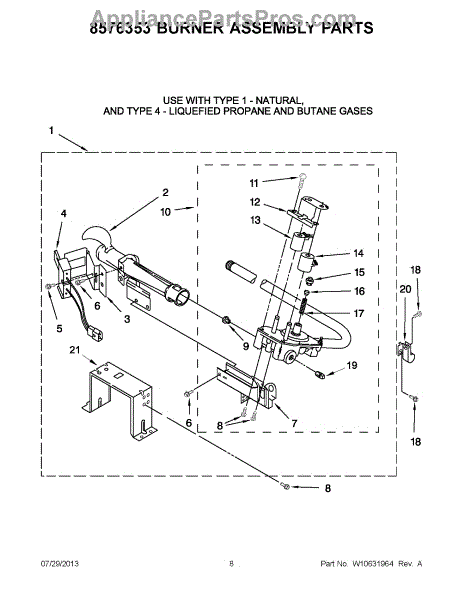 Parts for Whirlpool WGD5800BW0: 04 - 8576353 Burner Assembly Parts