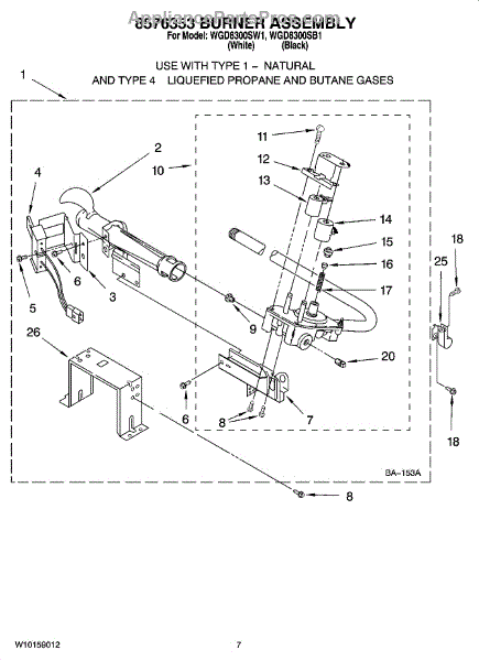 Parts for Whirlpool WGD8300SB1: 04 - 8576353 Burner Assembly Parts