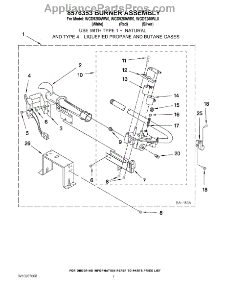 Parts for Whirlpool WGD9250WR0: 04 - 8576353 Burner Assembly Parts