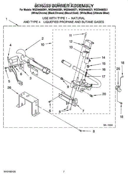 Parts for Whirlpool WGD9400ST1: 04 - 8576353 Burner Assembly Parts