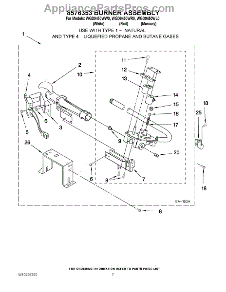 Parts for Whirlpool WGD9450WW0: 04 - 8576353 Burner Assembly Parts