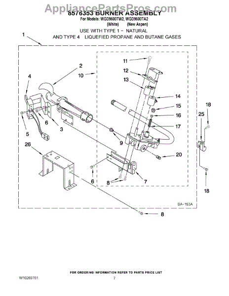 Parts for Whirlpool WGD9600TA2: 04 - 8576353 Burner Assembly Parts
