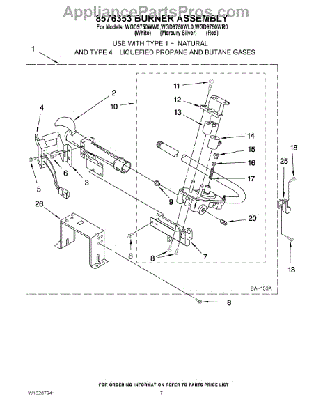 Parts for Whirlpool WGD9750WR0: 04 - 8576353 Burner Assembly Parts