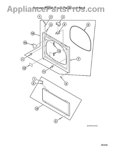 This door catch assembly secures the door when closed so the machine can run. A worn or broken catch can keep the door from latching firmly, causing start issues or interruptions during a cycle.