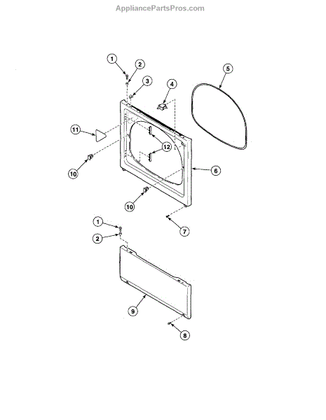 This door catch assembly secures the door when closed so the machine can run. A worn or broken catch can keep the door from latching firmly, causing start issues or interruptions during a cycle.