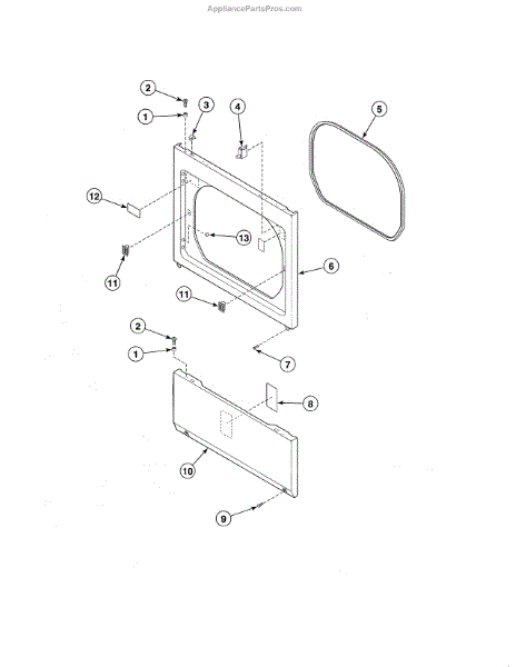 This door catch assembly secures the door when closed so the machine can run. A worn or broken catch can keep the door from latching firmly, causing start issues or interruptions during a cycle.