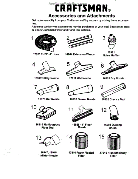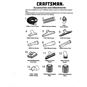 Parts for Craftsman 113177260: Accessories / Attachments Parts