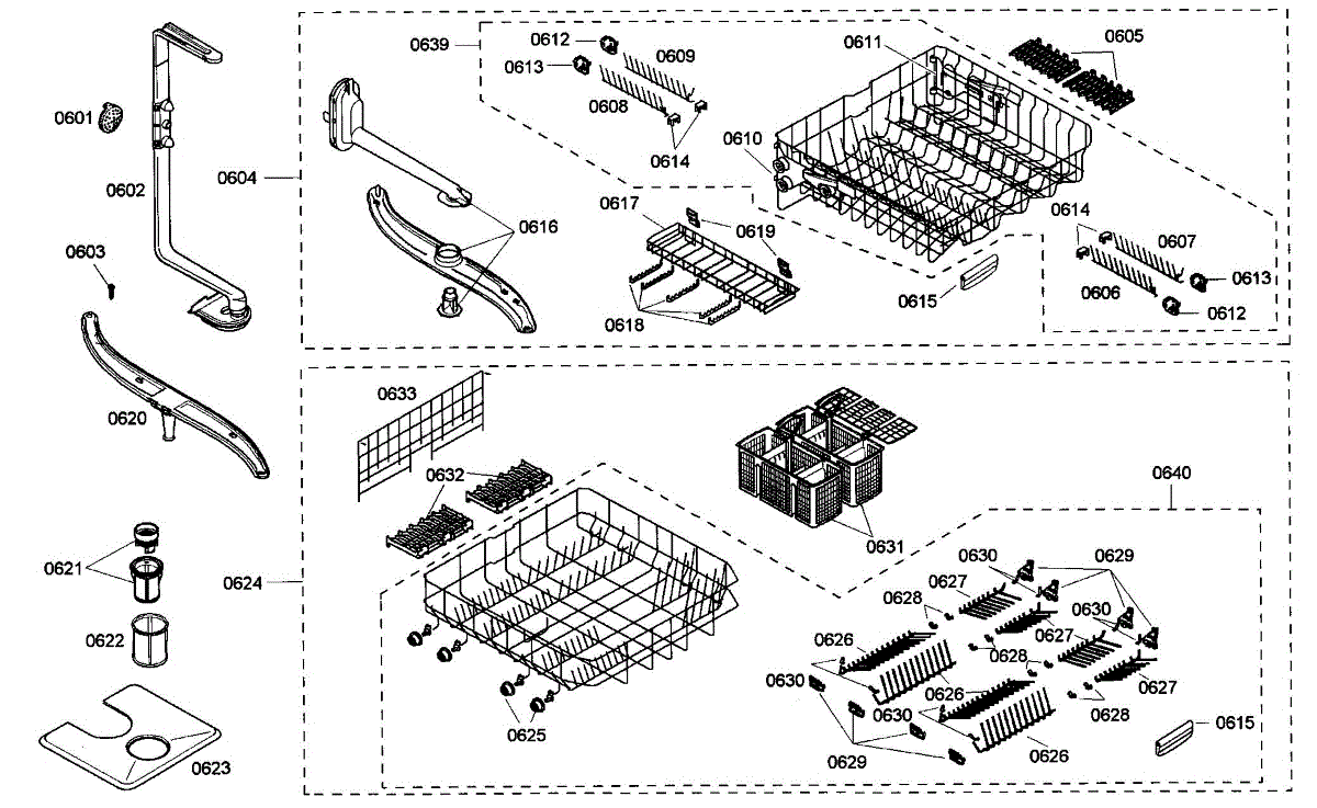 Lower dishrack assembly for dishwashers. Slides in and out for easy loading. Replace when cracked, rusted, or prongs are broken or missing.