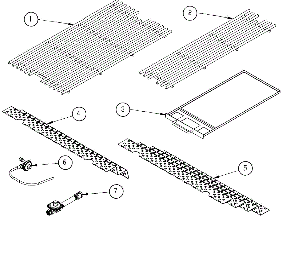 Porcelain-coated cooking grate for outdoor grills. Replace when surface coating is chipped, cracked, or worn. Essential for even heat distribution.