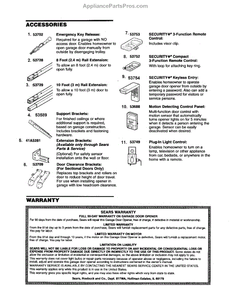 Parts for Craftsman 13953919D: Accessories And Warranty Parts