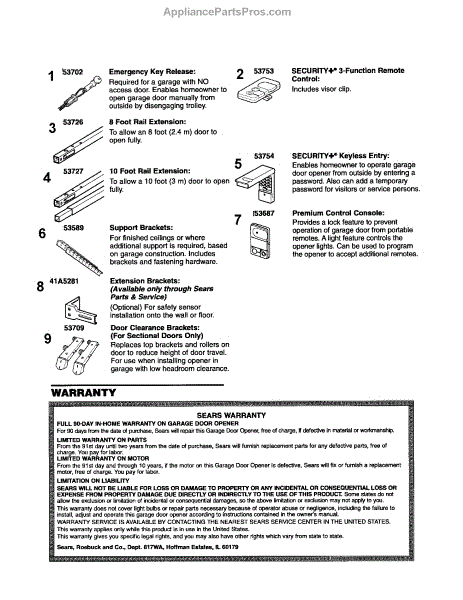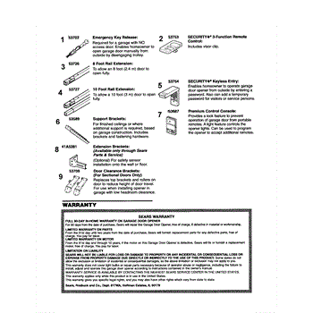 Parts for Craftsman 13953985D: Accessories / Warranty Parts