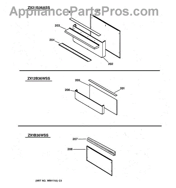 Parts for Ge ZDP36N6DSS: 09 - Accessory Backguard Assembly Parts
