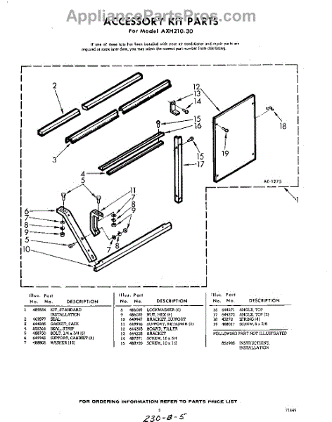 Parts for Whirlpool AXH21030: 05 - Accessory Kit Parts