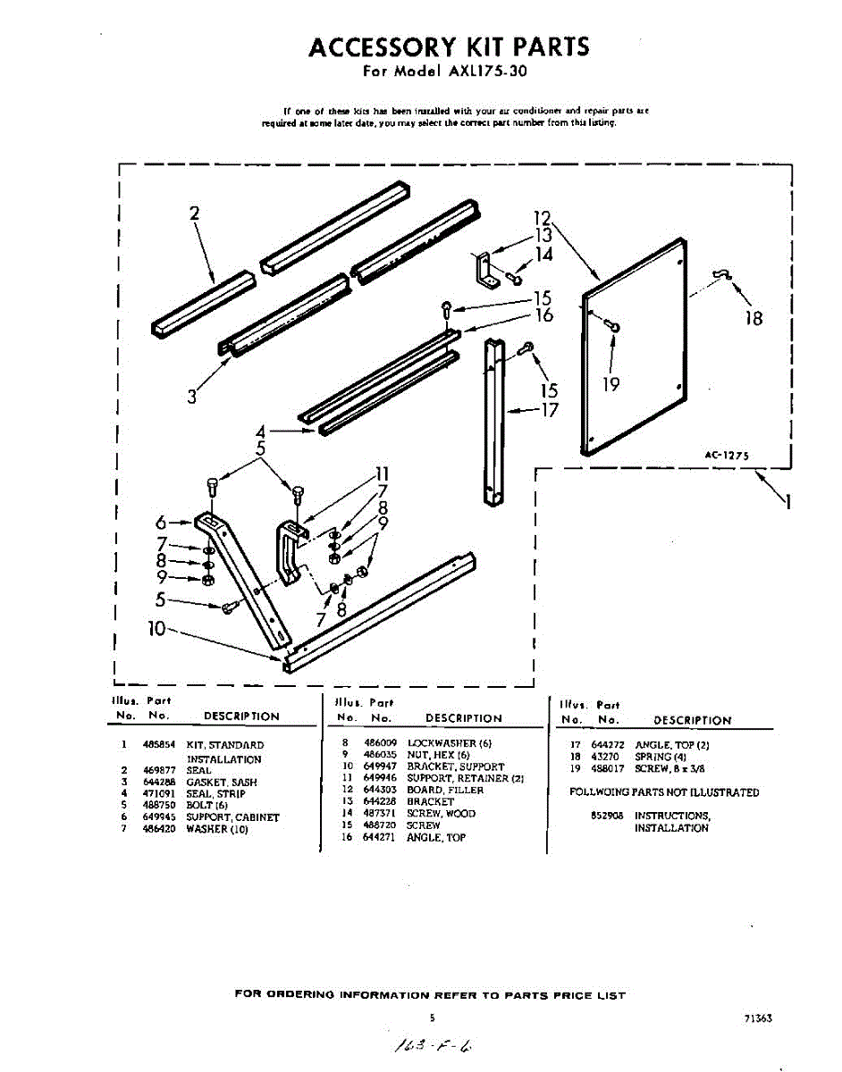 Parts for Whirlpool AXL17530: 05 - Accessory Kit Parts