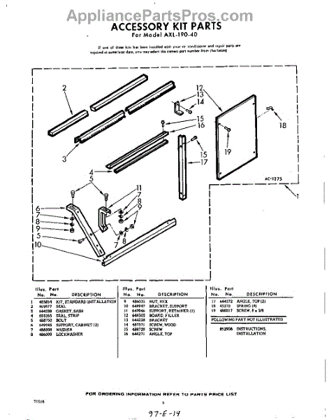 Parts for Whirlpool AXL19040: 06 - Accessory Kit Parts