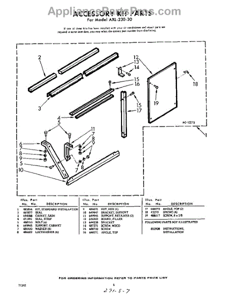 Parts for Whirlpool AXL23030: 06 - Accessory Kit Parts